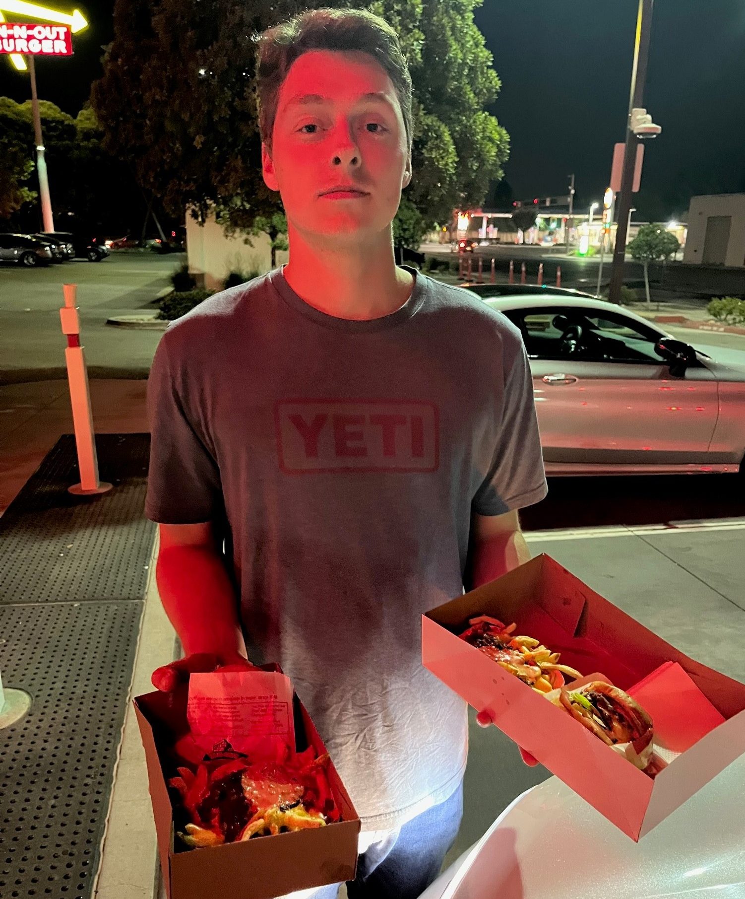 On a trip to San Francisco to deliver our final project presentation at Lockheed Martin, we touched down in California well into the late hours of the night. While the palm trees, impressive backdrops, and technological wonders of Silicon Valley leave most people in awe, Cody remained singularly focused. His mind was fixed on In-N-Out Burger. There we stood, indulging in the goodness of In-N-Out shortly after our arrival…..in a parking lot at midnight.